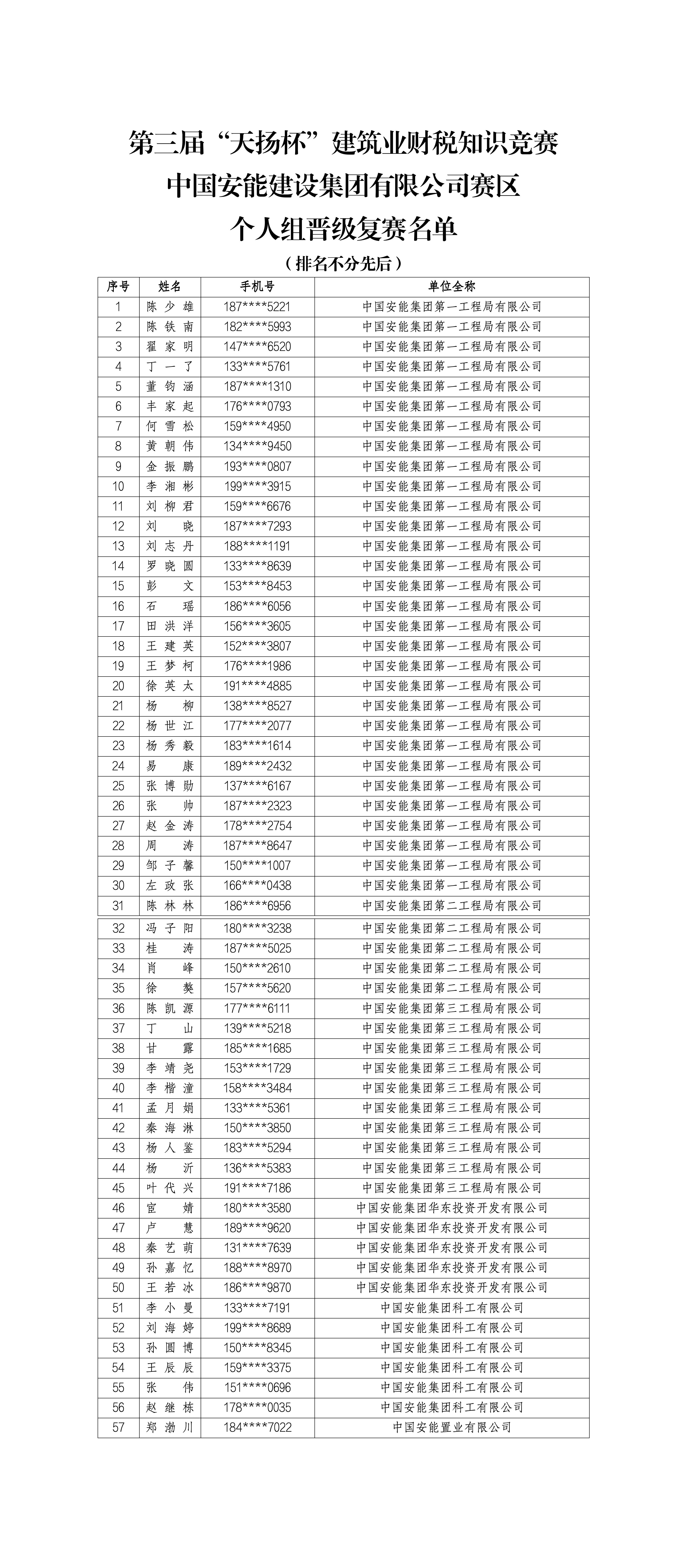 2. 第三屆“天揚杯”建筑業財稅知識競賽晉級復賽名單