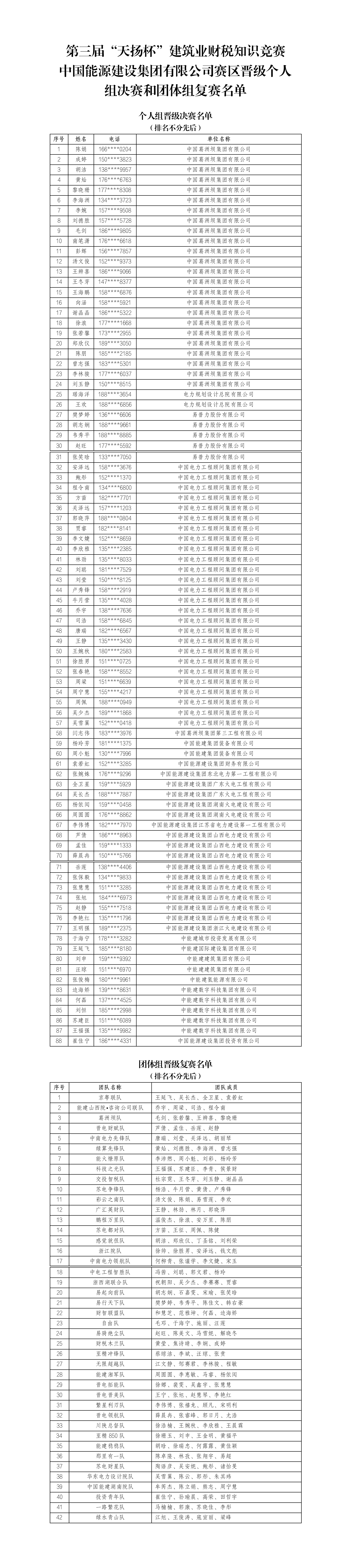 中國能源建設(shè)集團(tuán)有限公司賽區(qū)晉級個人組決賽和團(tuán)體組復(fù)賽名單