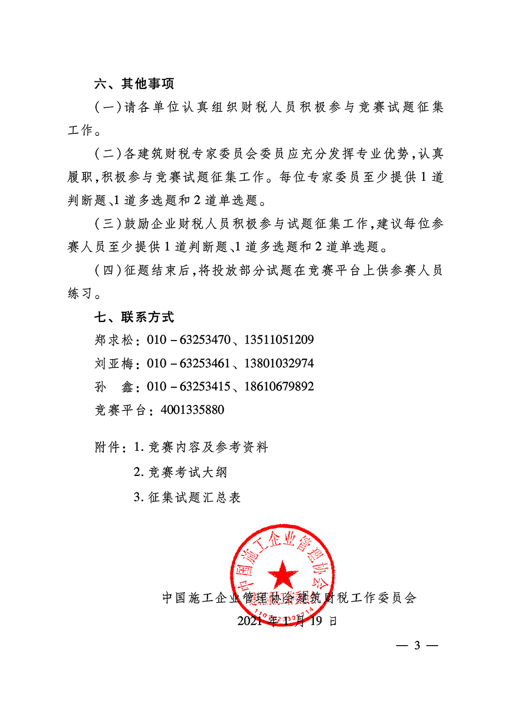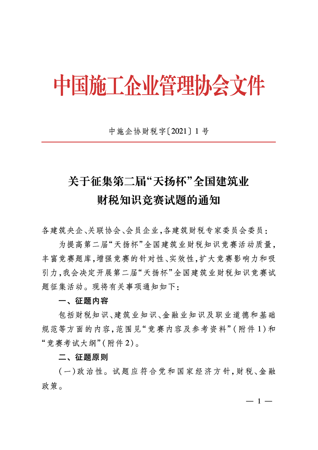 關(guān)于征集第二屆全國建筑業(yè)財(cái)稅知識競賽試題的通知